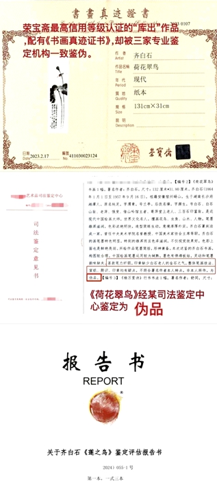 齐白石《荷花翠鸟》3次鉴定均为赝品
