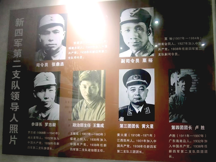 1938年8月进驻宣城北乡,机关驻地先后迁移塘南阁、史家湾、慈溪等地。期间指挥“奔袭官陡门”“狸桥战斗”“白沙李伏击战”“夜袭裘公渡”等战役。1939年9月粟裕率部迁往苏南。旧址现存作战地图、手摇电话等文物,复原了战场沙盘和指挥部场景。